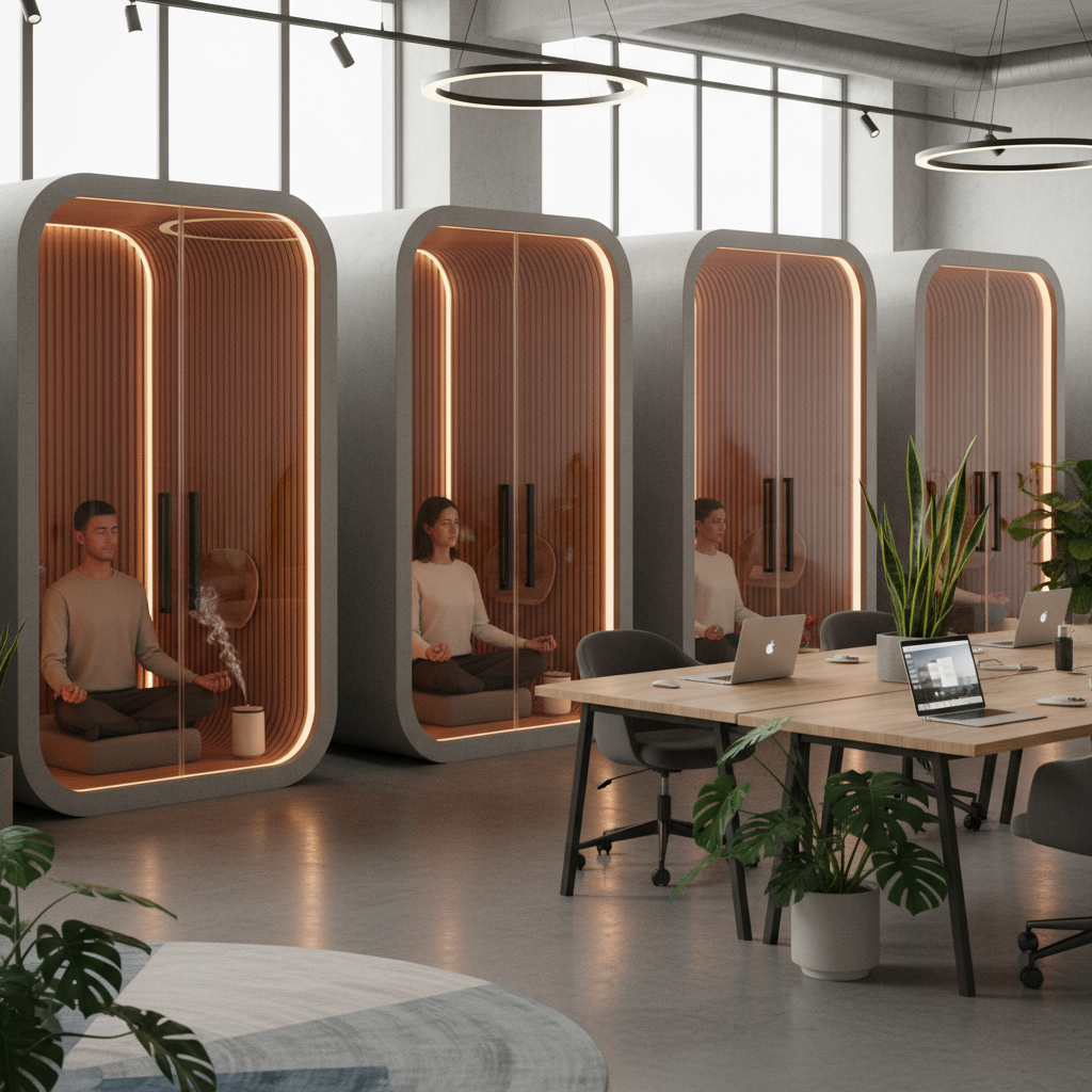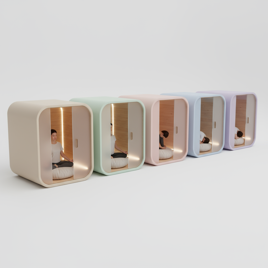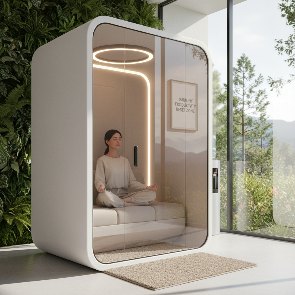 Ultra-quiet ventilation system refreshes air in just 3-5 minutes (noise < 35 dB). Larger pods can add AC!
